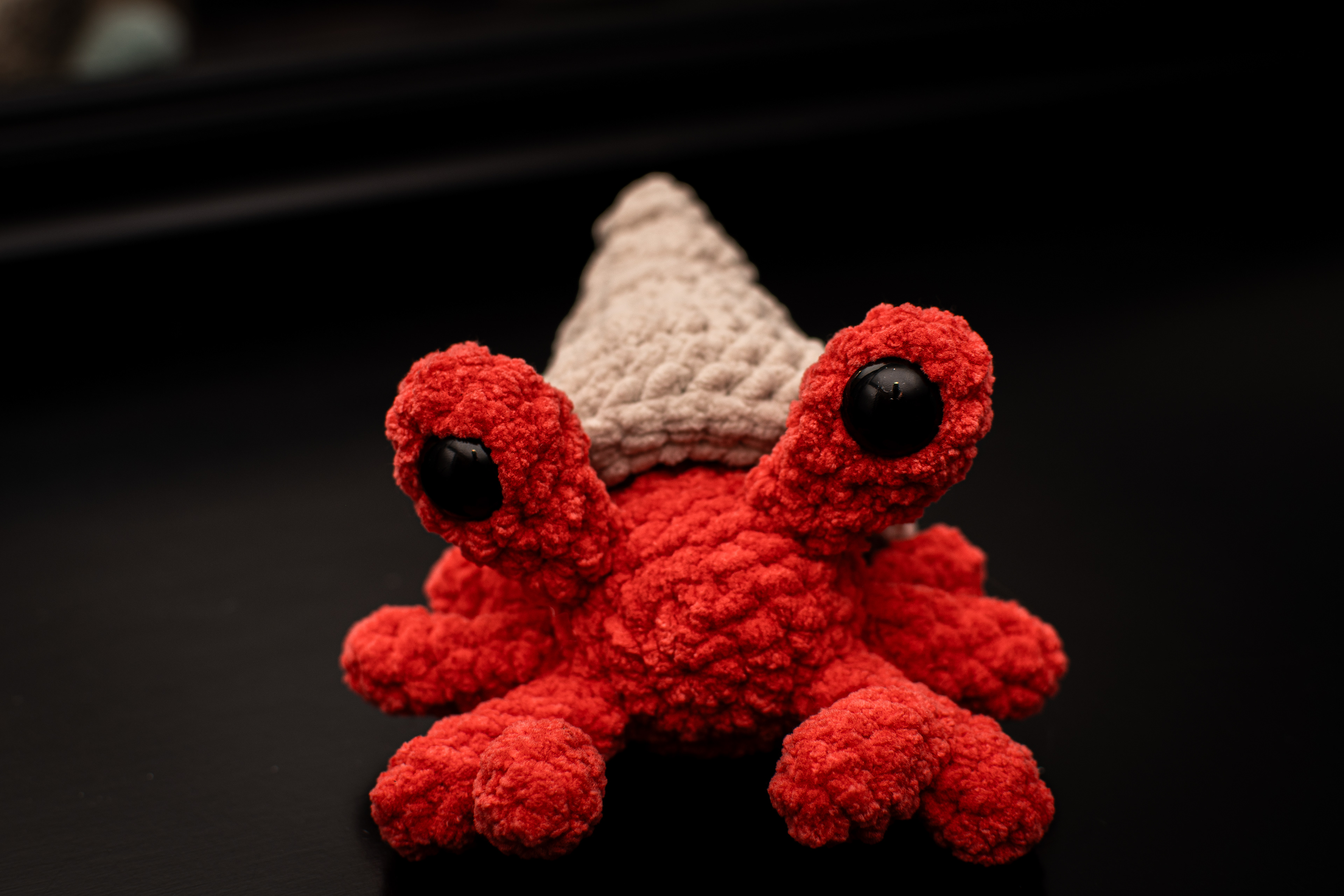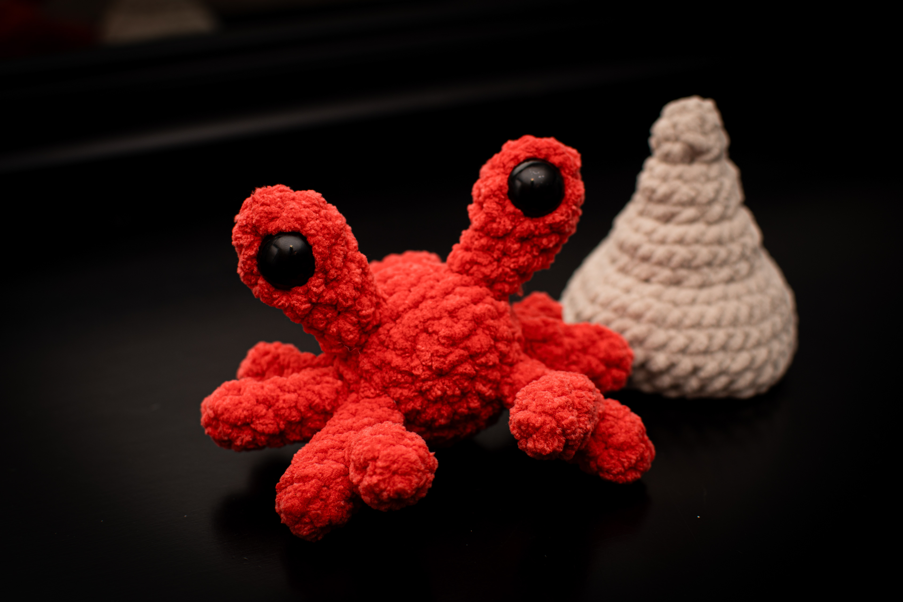 This hand-sized hermit crab is crocheted with soft yarn and comes with a removable shell, just like the real deal — perfect for hiding, switching up, or just showing off your crustacean’s quirky personality.