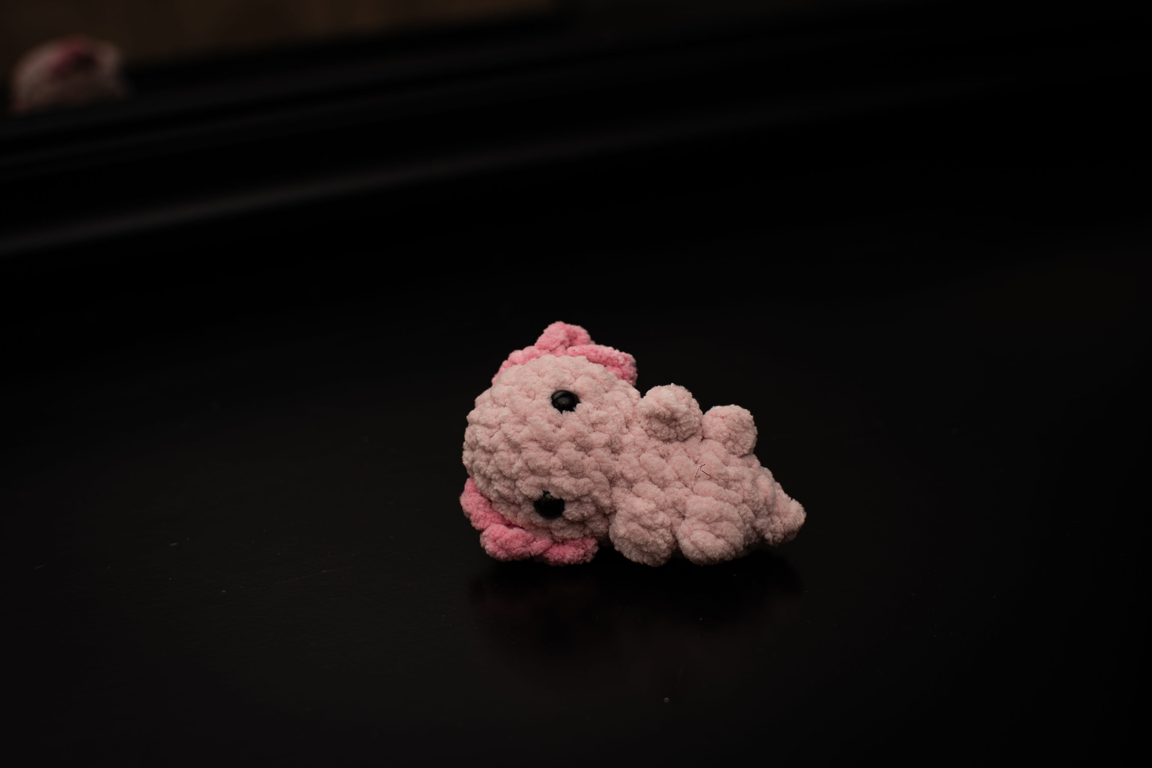 This tiny axolotl is hand-crocheted with plush chenille yarn and pure amphibious charm. Soft, sweet, and palm-sized, it’s the perfect little weirdo to perch on your shelf, ride along in your car, or guard your houseplants with quiet, blobby wisdom.